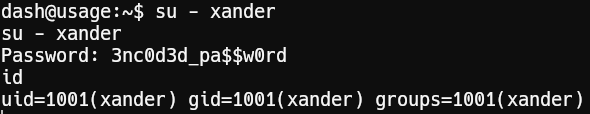 We can use the password 3nc0d3d_pa$$w0rd to switch user to xander: