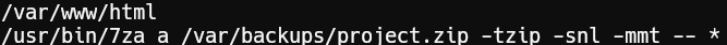The binary uses 7z with a wildcard (*), which can be exploited via wildcard injection, we get some good information on how to exploit this here https://book.hacktricks.xyz/linux-hardening/privilege-escalation/wildcards-spare-tricks#id-7z