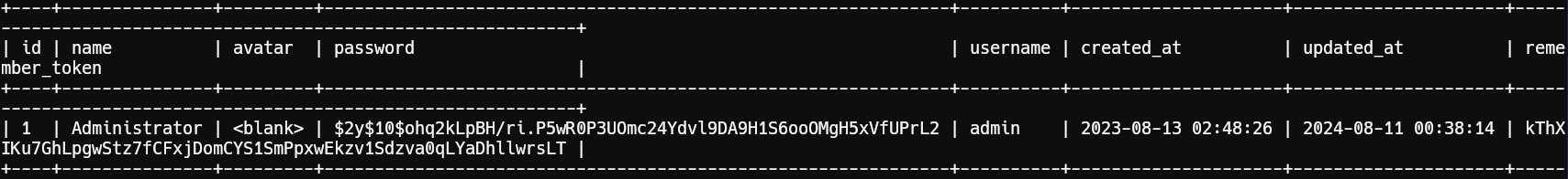 Dumping users and admin_users tables: